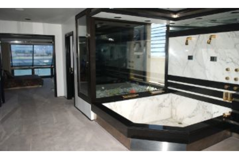Included in with this 3,000 sq ft paradise are: sunken living room, 25 foot high stainless fireplace back lit by blue neon, black granite floors, wet bars, gorgeous office with full wireless high speed Internet, fax, printers, etc. There is a steam shower and sunken tub in the master bathroom. Sleep comfortably in the Stearns & Foster beds, nine feet by eight feet master bed with Roman Carrera white marble, 24k gold fixtures, and stained glass throughout by NY Met artist. Some other amenities are air ccnditioning, high definition TV, cable TVs, VCRs, DVDs, stereos, CD players, full high end black granite kitchen, microwave, dishwasher, refrigerator, and ice maker. Also included is a washer Included in with this 3,000 sq ft paradise are: sunken living room, 25 foot high stainless fireplace back lit by blue neon, black granite floors, wet bars, gorgeous office with full wireless high speed Internet, fax, printers, etc. There is a steam shower and sunken tub in the master bathroom. Sleep comfortably in the Stearns & Foster beds, nine feet by eight feet master bed with Roman Carrera white marble, 24k gold fixtures, and stained glass throughout by NY Met artist. Some other amenities are air ccnditioning, high definition TV, cable TVs, VCRs, DVDs, stereos, CD players, full high end black granite kitchen, microwave, dishwasher, refrigerator, and ice maker. Also included is a washer & dryer, 10 h.p. Jacuzzi w/fiber optic lighting Included in with this 3,000 sq ft paradise are: sunken living room, 25 foot high stainless fireplace back lit by blue neon, black granite floors, wet bars, gorgeous office with full wireless high speed Internet, fax, printers, etc. There is a steam shower and sunken tub in the master bathroom. Sleep comfortably in the Stearns & Foster beds, nine feet by eight feet master bed with Roman Carrera white marble, 24k gold fixtures, and stained glass throughout by NY Met artist. Some other amenities are air ccnditioning, high definition TV, cable TVs, VCRs, DVDs, stereos, CD players, full high end black granite kitchen, microwave, dishwasher, refrigerator, and ice maker. Also included is a washer & dryer, 10 h.p. Jacuzzi w/fiber optic lighting & stereo built-in, a 2 car garage, outdoor gas grill, and 12' High Moving Glass Bayside Panels.Surrounding Description