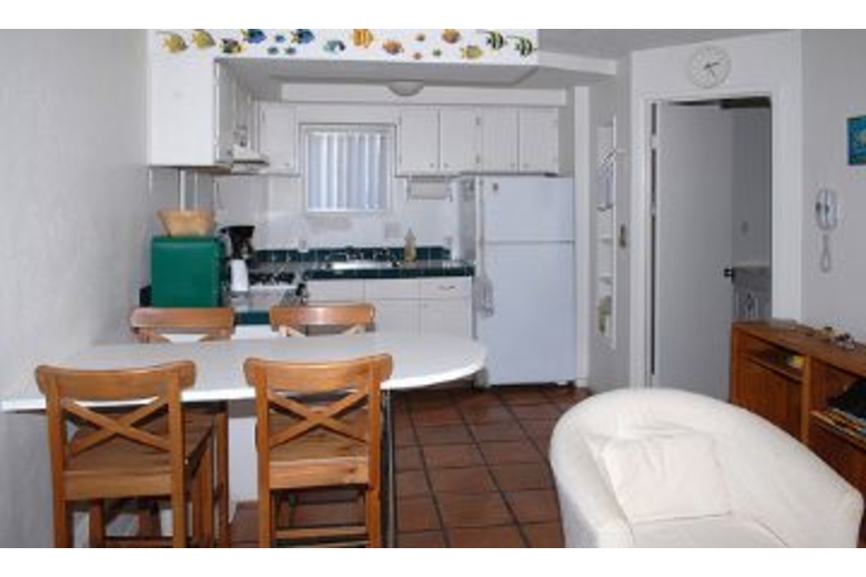 This house has two bedrooms, one and a half bathrooms, and sleeps four. The kitchen comes fully equipped with microwave, coffee maker, and refrigerator, and there is seating for four in the dining area. In the living area there is a CD player, DVD player, cable TV, and comfortable furnishings. There is a queen bed in each of the bedrooms.Surrounding Description