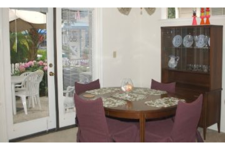 This two bedroom and two bathroom home has charming curb appeal and a country look to the exterior. Inside you will find comfort abounds with the spacious floor plan and relaxing furnishings. There is a queen bed in the master, two twins in the second bedroom, and a sleeper sofa in the living room providing accommodations for up to six guests. Enjoy a fun night time barbecue out of the patio where there is a table and chairs for added comfort. Amenities include cable TV, DVD player, VCR, a washer and dryer, garden tub, and garage parking. The kitchen is fully equipped with everything you need to feel right at home during your stay including a dishwasher and microwave for added convenience. After a fun filled day splashing in the ocean, enjoy relaxing by the warm fireplace while sipping your favorite beverage and reminiscing about your day with your guests.Surrounding Description