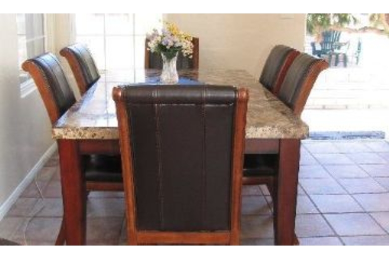 This home features beautiful decor and furnishings in the living areas. There is a full kitchen, as well a dining table for 6. There are three bedrooms, one with a queen, one with a set of twins, and one with a double and s twin.Surrounding Description