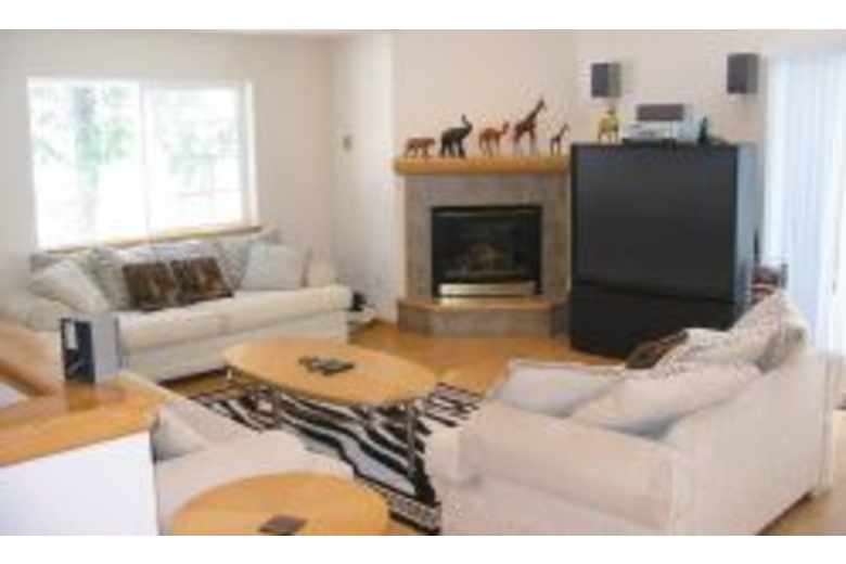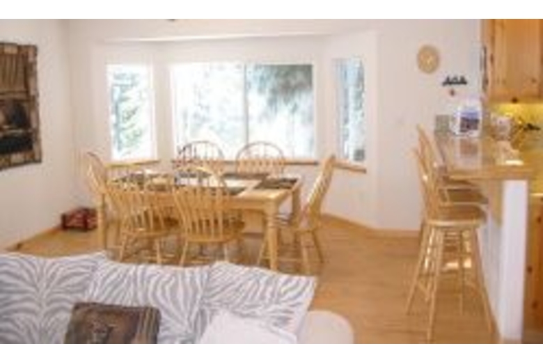 There is a large hot tub on the back deck with an LCD TV. Theliving room has a big screen TV with a DVD and stereo. There is aseparate dining area for six and room for four at the bar. This homehas hardwood floors and wood accents throughout giving you a realmountain home feel. There are 4 bedrooms and 2 bathrooms. This home features 2 king, 1 queen, and a double futon for sleeping.Surrounding Description