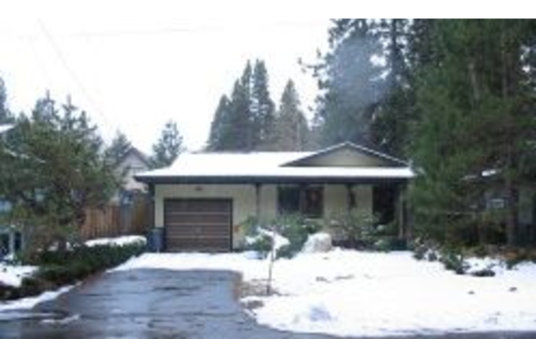 This is a nicely decorated two bedroom home within walking distance to thelake. It is a one level home with a large kitchen, dining, and living area. There is a wood burning fireplace in the living room. There are 2 bedroom and 1 bathroom. The bedrooms feature a king bed, queen bed, and a double sleeper sofa in the living room. This home is cozy, yet spacious for your wonderful vacation in Tahoe.Surrounding Description