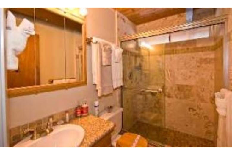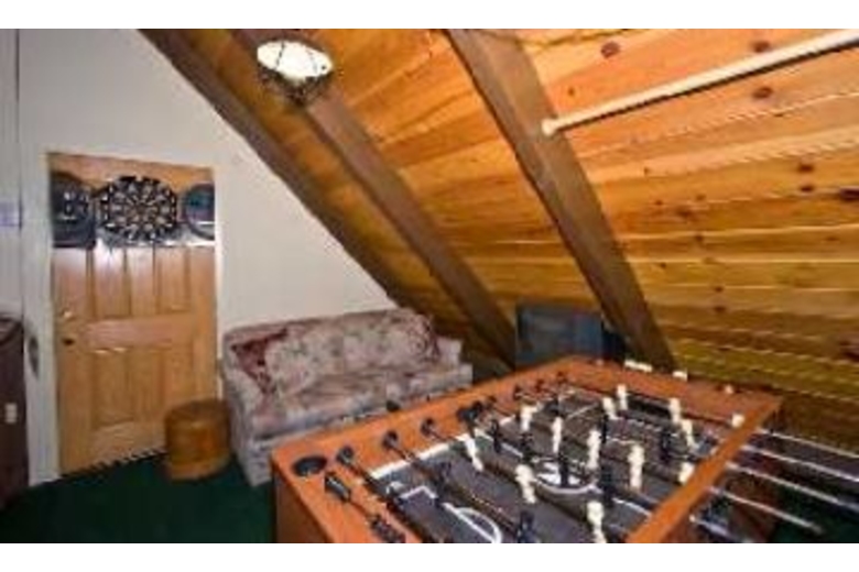 This two bedroom, two bath home has a loft with a foosball table and dart board. Also available in this home is a washer, dryer and high speed internet access. The living area has a fireplace, TV and DVD player. The dining area has a table and seating for four people. The fully equipped kitchen comes with a toaster, microwave, dishwasher and coffee maker. The first bedroom has a queen bed and the second bedroom has another queen bed. There are two double sofa sleepers available for four more people.Surrounding Description