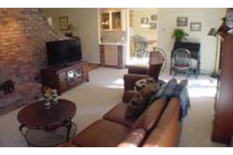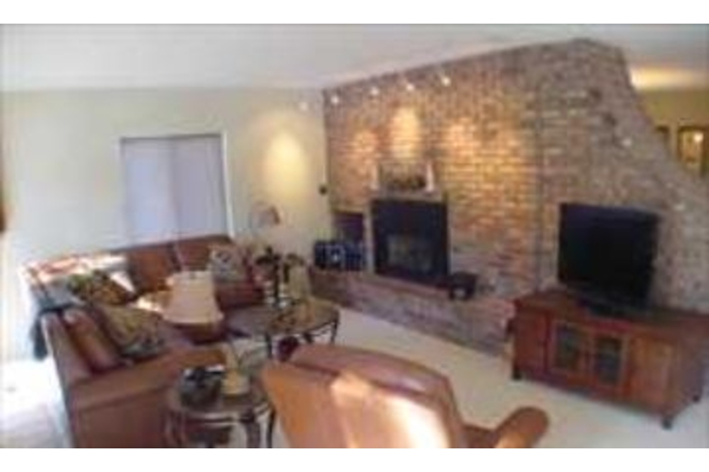 The living area offers a large sofa and a gas fireplace with a beautiful brick surround. There is a flat screen TV in this room. The kitchen is nicely equipped with great appliances. The master bedroom boasts a fireplace and includes a queen size bed. The second bedroom offers a queen bed and the third bedroom includes two twin beds. There is also a sleeper sofa as well. This home features a washer and dryer and a garage.Surrounding Description