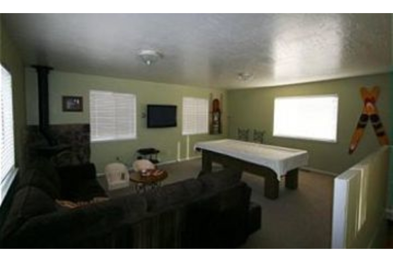 The spacious kitchen offers a large island with seating, and great appliances to make cooking enjoyable. The living area offers comfortable sofas but the fireplace is not available for guest use. The family area is a great place to relax and hang out with friends and offers a pool table. The master bedroom offers a queen bed with nice bedding and a large dresser. One guest room features two twin beds while the other guest room offers two bunk beds, is a great place for the kids traveling with your group.Surrounding Description