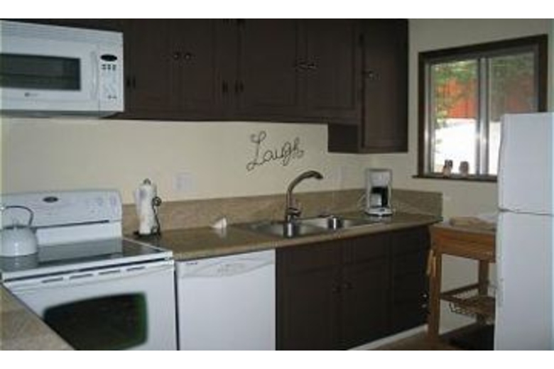 Renovated in late 2008, this updated mountain style home sleeps up to 8 guests. The decor is done in a contemporary mountain motif along with a bit of whimsy. Natural pine ceilings, overhead beams, maple hardwood and carpet flooring add to the Tahoe ambiance.