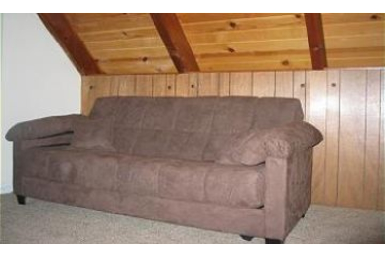 The spacious loft is set up with a TV, foosball table, a sleeper sofa and a small seating area. Let the kids enjoy this upstairs space while the adults converse in front of the wood burning fireplace or enjoy the flat screen TV in the living area. The kitchen is spacious and open. Enjoy great appliances including a microwave and dishwasher to make meal time a breeze. Two bedrooms with queen beds are located downstairs as is a bathroom. Upstairs, enjoy another bedroom, also with a queen bed.Surrounding Description