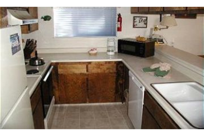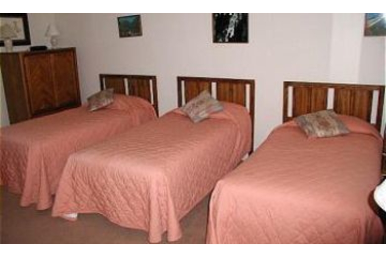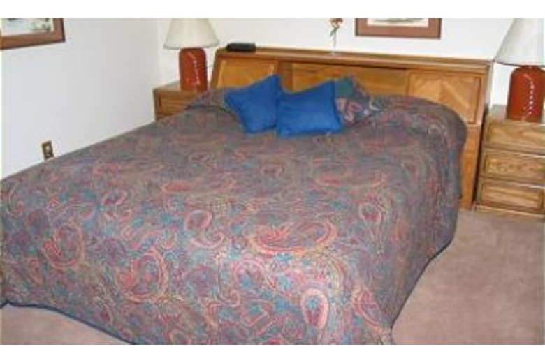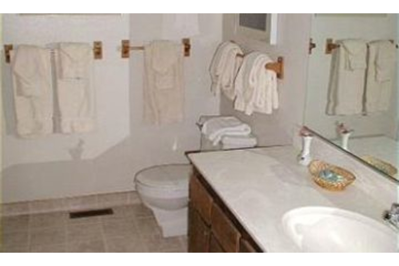 The living area is very spacious and features a wood burning fireplace and a TV. The furniture is very comfortable and this room has high ceilings. The well equipped kitchen offers a great place to prepare meals while vacationing. It boasts a dishwasher to make clean up easy. The master bedroom offers a king size bed and two nightstands with lamps. One guest room also offers a king bed with two twin beds in the second guest room. The third guest room offers three twin beds and features fun art work. Additional amenities include cable TV, a VCR and DVD player and a washer and dryer.Surrounding Description