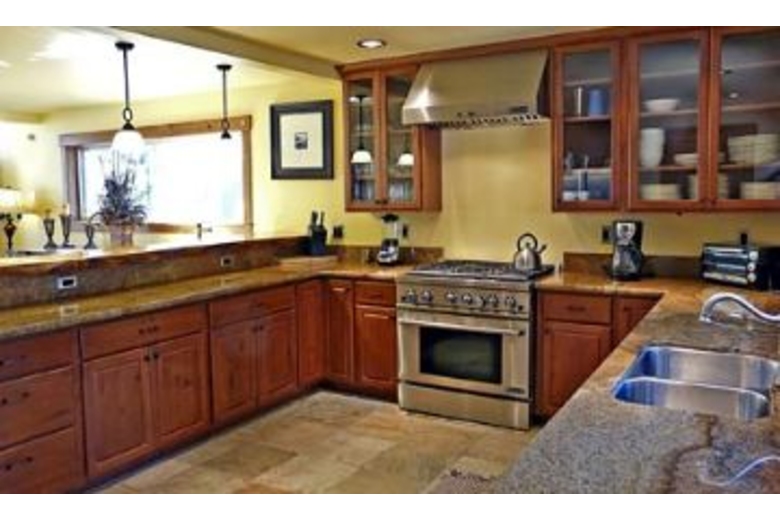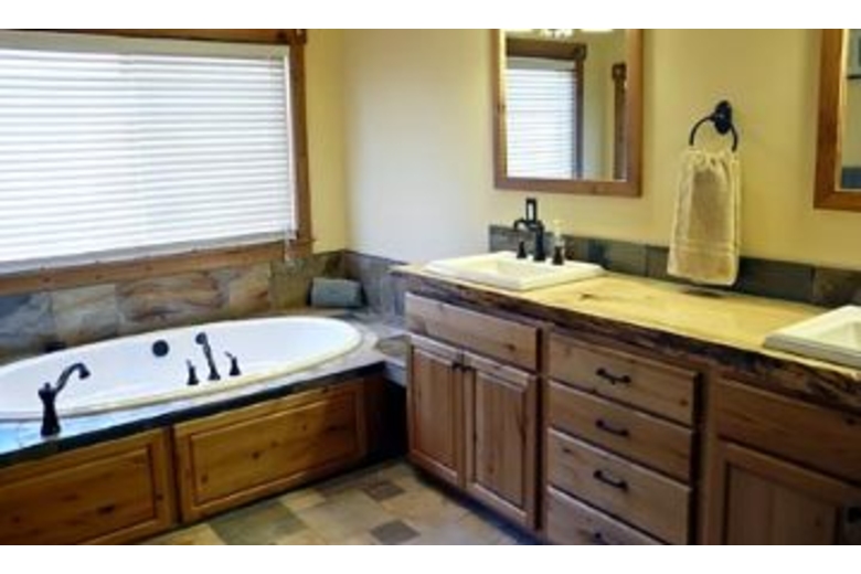 This terrific four bedroom and three bathroom home has wonderful features such as hickory wood floors, quartz tile, wool carpet, and a loft that has a pool table. The spacious living room has satellite programming, comfortable seating, and a cozy stone hearth fireplace. The dining area has a wood table that will seat six guests. The gorgeous kitchen is fully equipped with all your cooking needs and has stainless steel appliances. The bedding consists of one king bed, two queen beds, one double bed, and one twin bed. The two master suites have their own private bathroom with a separate shower, and one of the master bathrooms has a spa tub. Step out onto the deck and sit back and relax in the hot tub while enjoying the breathtaking mountain view.Surrounding Description