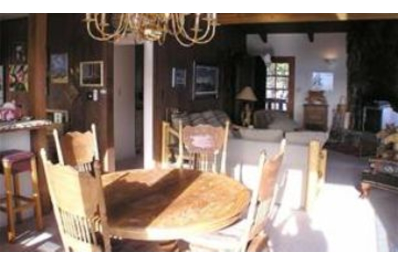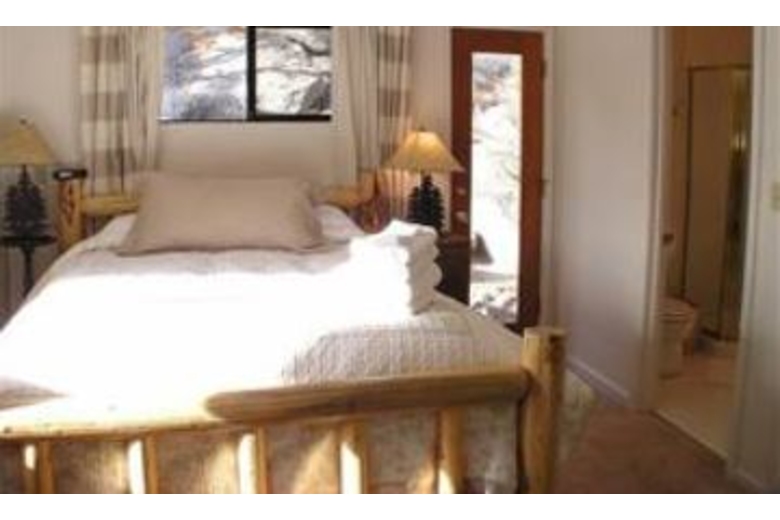This vacation home has a charming French Country decor. The main house offers four bedrooms and three bathrooms. The mother-in-law suite offers one bedroom and one bathroom and is located below the main house. The bright and airy living room has comfortable seating, a fireplace, and a television. The dining area has a wood table that will seat four guests. The kitchen is fully equipped and has an automatic dishwasher. Each bedroom offers plush down feather comforters and luxury pillows. Nine guests will have a peaceful night's rest on the provided bedding, which includes one queen bed and two double beds in the main house. And the mother-in-law suite has one queen bed and one futon. Step outside on the deck and enjoy the wooded view of the mountains. Walk right out your front door and enjoy the hiking and skiing as the weather permits.Surrounding Description