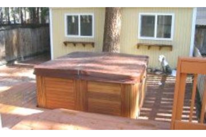 The essence of Tahoe charm! Cute, clean, cozy home in a quiet wooded area in the heart of town. Nicely furnished, with private hot tub. The place to build great Tahoe memories!