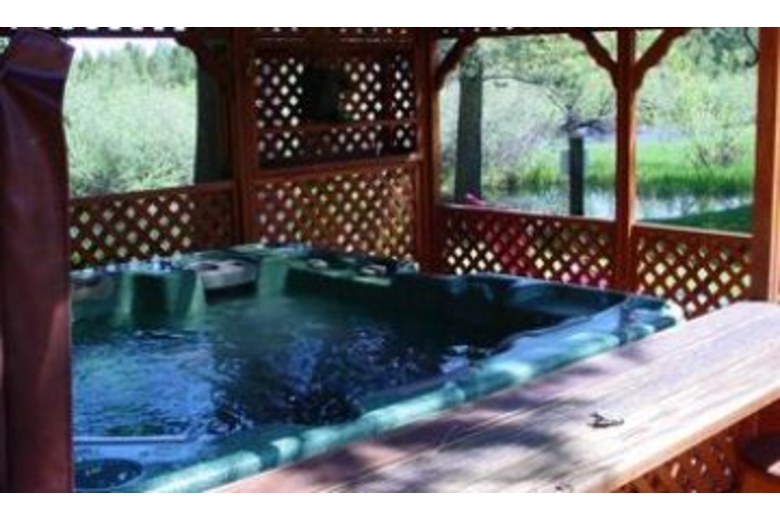 Lillys Landing has two bedrooms available with queen and double beds. There is a sofabed which contains a queen size bed in the front living room. There is a small cabin in the back that is seperate and has a twin bed perfect for children or one adult. The cabin has a fully equipped kitchen with dishwasher. Fully automated gas fireplace, BBQ area with gas BBQ, washer and dryer, stereo with satellite TV, 500 gallon spa equipped for six with outdoor speakers and lights.Surrounding Description