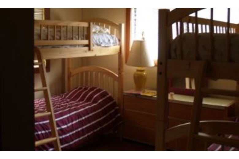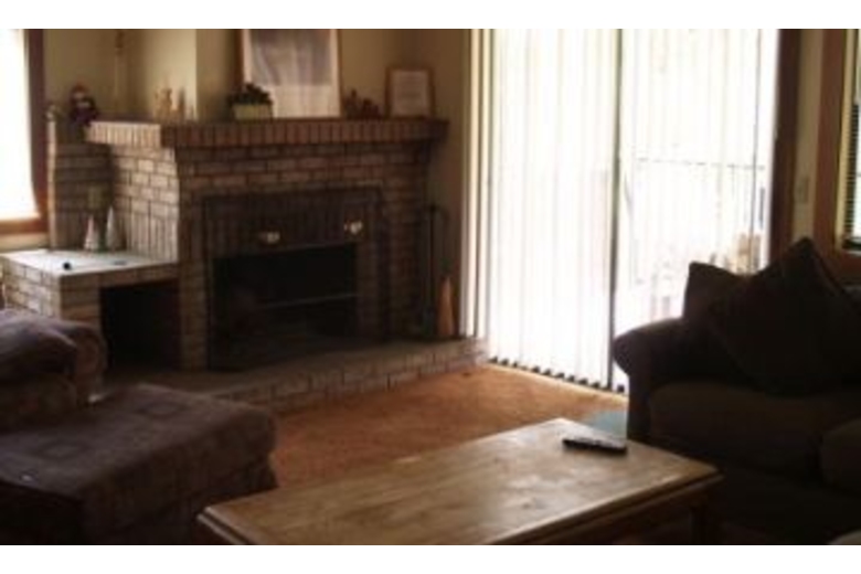Enjoy a beautiful townhouse for you next weekend getaway. The living area is comfortably furnished and features a huge brick fireplace as well as access to the patio. The kitchen is well equipped. To enjoy a delicious meal together, the dining area features a lovely table and the brick fireplace in the living area continues into this room.To comfortably sleep eight people, this townhouse offers you three amazing bedrooms. The first bedroom features a cozy queen bed and has its own private bathroom. The second room is perfect for a group of kids and features two sets of twin bunk beds. The third room features a queen bed.Surrounding Description