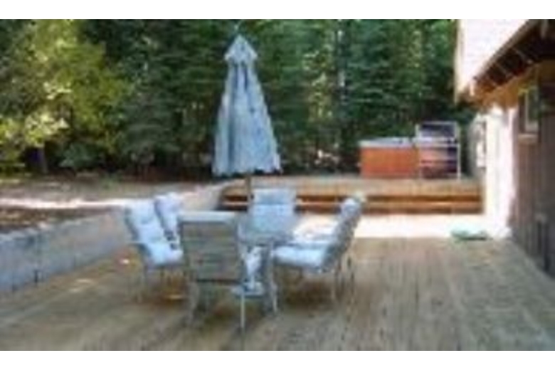 The entry level offers an open living/dining/kitchen area complete with granite counter tops and an extremely well stocked kitchen that will make cooking a pleasure. Perhaps you would enjoy just curling up and reading by the fireplace. Also on the first level is a bedroom with a queen size bed, full bath with jetted tub and the large laundry room that lets you onto the large deck with hot tub. The second level offers a spacious master bedroom with it's own balcony, a third bedroom with a double bed and two singles and a full bath. The owner wants you to have a wonderful vacation even if you never leave the house by offering full cable including Showtime and HBO plus DVD's, plush towels, cozy linens and of course the stress and ache relieving hot tub.Surrounding Description