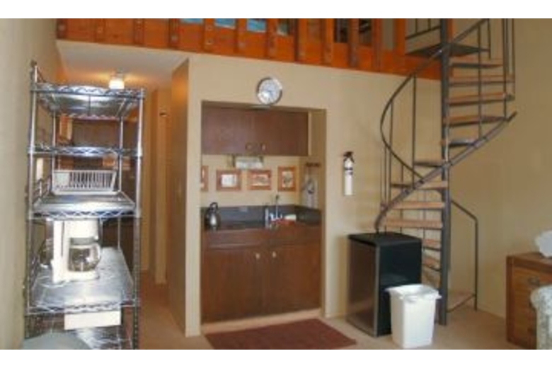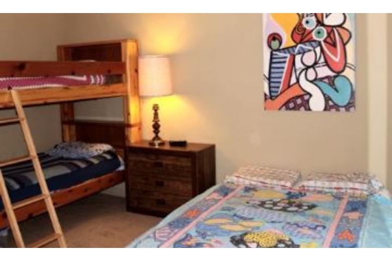 This condo has all of the amenities of home. In the living room you will find two sofa's where you can enjoy conversation with family or friends. Watch your favorite movie on the TV that occupies the living room. The kitchenette comes complete with cook top, refrigerator, sink and microwave. The bedroom is decorated in bright colors and boasts of a queen futon and a set of bunk beds. Take advantage of the condo lobby where you will find a color satellite TV where you can watch all of those important sports games. Or curl up in front of the roaring fire with a good book.Surrounding Description