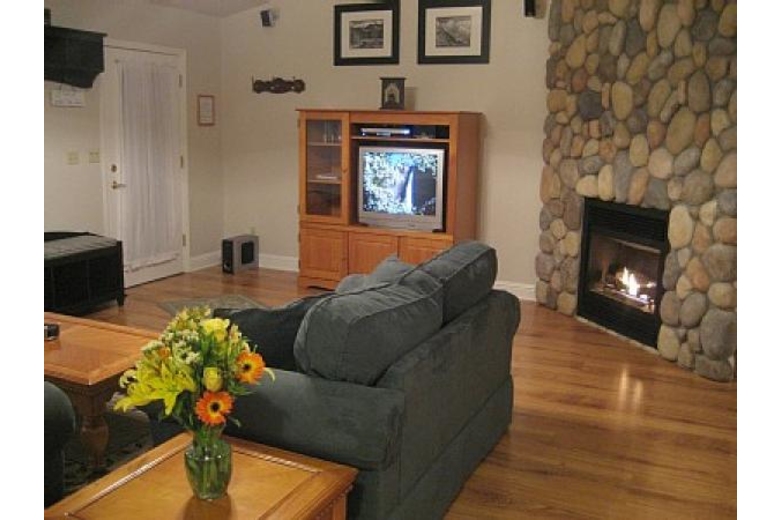 The highlight of the Living room is a large rock wall with a gas fireplace for cozy evenings. All Living room furnishings are new, including an entertainment center with satellite TV, a surround sound home theater system, FM/DVD/CD player, and front USB and A/V jacks for easy access. The fully furnished Dining room next to the Living room affords easy access to the Kitchen.