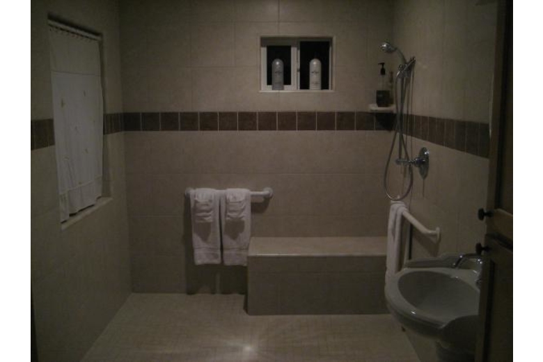 The Master bathroom has a separate vanity area and is wheelchair accessible, equipped with assist bars and a tiled roll-in shower with a built-in bench. The other 2 bedrooms are also tastefully decorated in a Cottage theme, each with Queen beds. The second full bathroom, located between these bedrooms has a tub/shower combo.