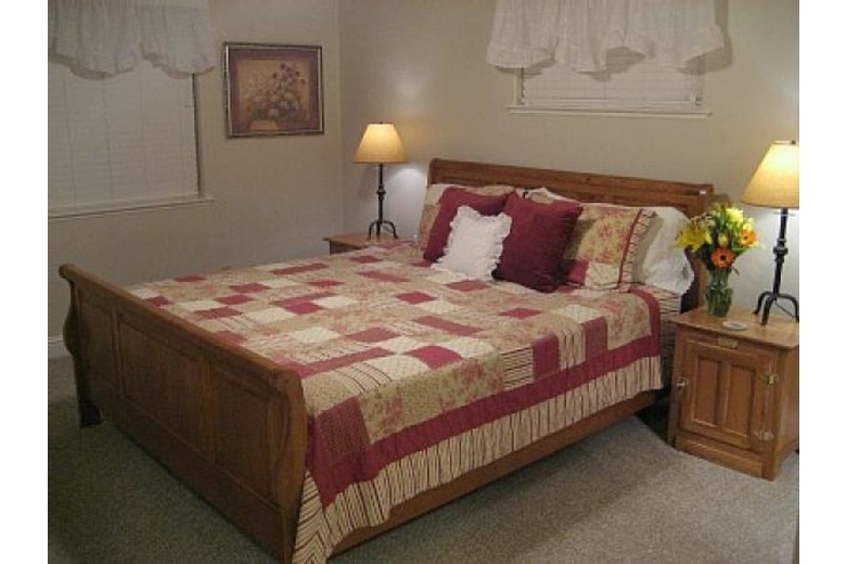 Beautifully decorated and exceptionally clean, the Country Cottage has three comfortable bedrooms that sleep six - all with new mattresses/box springs, hand sewn country quilts, Berber carpeting and adjacent tiled bathrooms. The Master bedroom features a King size solid oak sleigh bed.