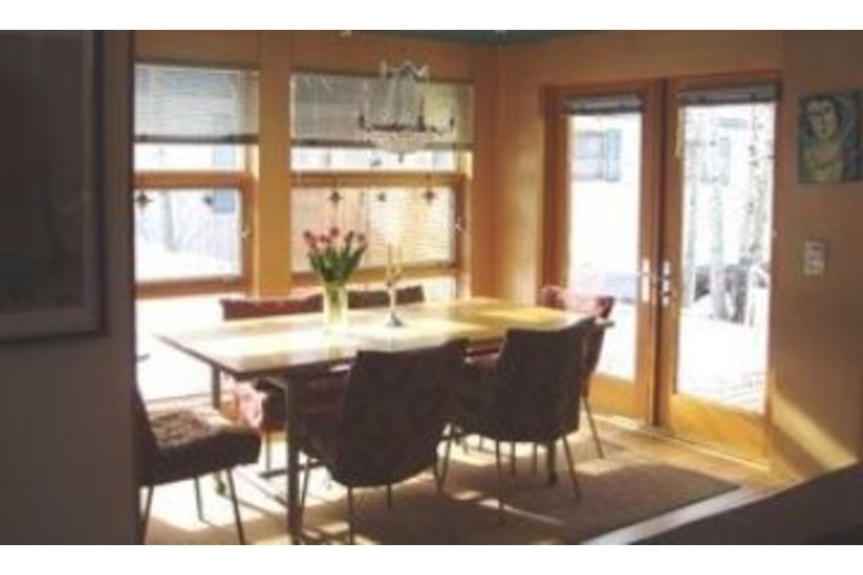 Newly remodeled with hardwood floors has added warmth to this exquisite contemporary architecture. Extremely comfortable L -shaped couch , gas fire place, 40 inch flat screen lcd hd television. Good size , FABULOUS kitchen with stainless steel appliances . Gas stove . Grill out on the deck. The dining area has windows all around. Plenty of natural light. High speed wireless internet and town bikes included. One king size bed in master bedroom and child's room with bunk bed in the basement could be available upon request. Good size deck facing south outside . Shade created from the tall Aspen trees. Small yard. Private and quiet.Surrounding Description