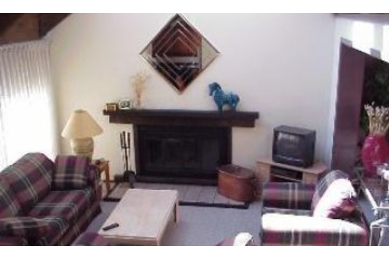 With three bedrooms and three baths this townhome comfortably sleeps eight. The ground level has the living area with a queen sofa sleeper and a fireplace. You also have a full bathroom, the dining area and the kitchen which is small but fully equipped. You'll also have your own washer and dryer. The second level has a queen bed and private bath and on the third level there's a bunk bed in one room with two twins in the other. For your entertainment there are three TVs, a VCR and a DVD player. On the deck you can use the gas grill when the weather is nice.Surrounding Description