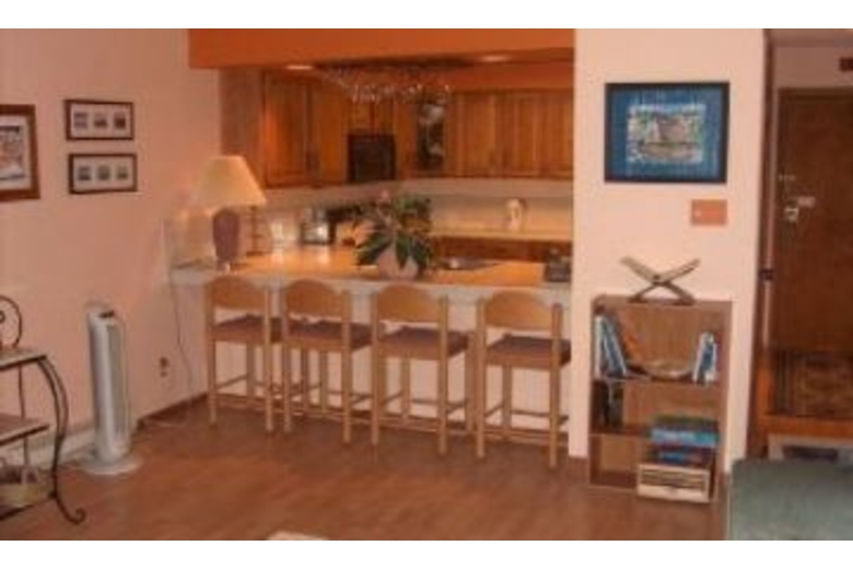 In this comfortable one bedroom one bathroom condo all the amenities you need for your home away from home are here. The bedroom is furnished with a king sized bed. The kitchen is fully equipped to suite your needs. Get cozy next to the gas fireplace on winter nights while enjoying cable television of watch a movie on with the DVD player in the living room. From this condo you can enjoy wooded views from the private deck. The complex has many on-site amenities including a shared hot tub, laundry facilities and heated under ground parkingSurrounding Description