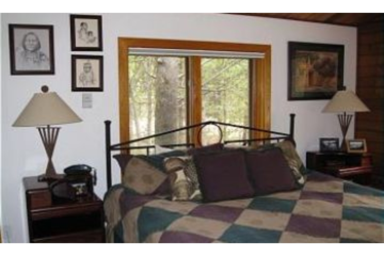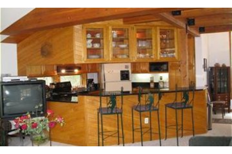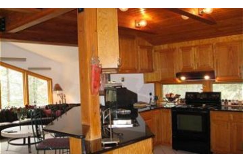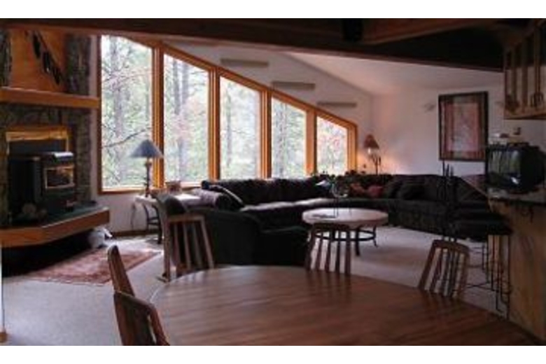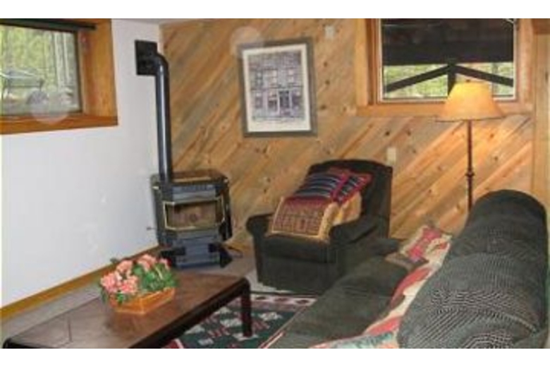 In this home there are 4 bedrooms and 3 bathrooms and can sleep up to 10 of your closest friends and family. The master bedroom has a luxurious king sized bed and access to the deck where there is a romantic hot tub and it also has it's own private full bathroom. The main level has the second bedroom that has a queen sized bed and it shares a full bathroom with the third bedroom which has two twin beds. On the lower level is the fourth bedroom which has a queen sized bed and a full private bathroom as well. In the main living area you will find a large, sectional sofa, lofted ceilings, and a warm and inviting fireplace that everyone can gather around and warm up after a long day on the slopes. The kitchen is fully equipped with everything you need to make delicious home made meals. Adjacent to the kitchen is the dining area with a table that can sit up to 8 people. Overlooking the living area is the loft that provides a quiet and comfortable place to read and relax with plenty of reading material from the bookcases. Located on the lower level, there is a family room with three couches (one is a sleeper sofa), a wood pellet stove and TV.Surrounding Description