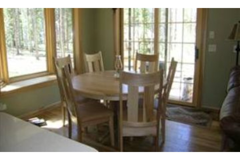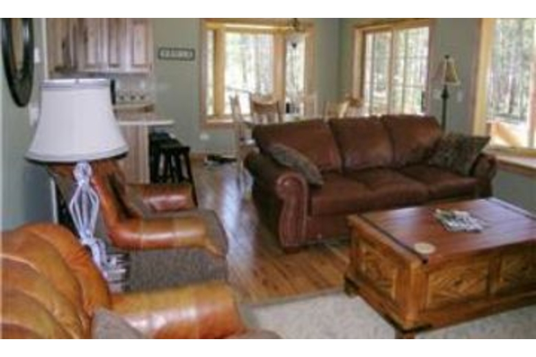 This 1,500 square foot home offers three bedrooms and two bathrooms. This vacation rental has high-end features that begin outside with the heated entry steps that lead to the mud room, which is perfect for coats and ski equipment. Enjoy the heated hickory hardwood flooring, and open layout offered throughout this home. The spacious living room has a cozy gas fireplace for those snowy winter days. Enjoy the home theater system, Play Station 2, DVD player, and comfortable seating. The dining area has a table that will seat six guests and is surrounded by large windows that offers a fabulous forest view. The kitchen is fully equipped with all your cooking needs and is perfect for those looking to dine in. Enjoy an espresso out on the patio that was made from the kitchen espresso machine. The bedding, which will accommodate eight guests, includes two queen beds, two twin beds, and a queen sofa sleeper in the living room. Each bedroom also offers an HDTV with a DVD player. There is a full bathroom with a jetted tub on the main level and a second bathroom with a steam shower upstairs. This unit comes with an unlimited gondola lot parking pass, free wireless Internet access, and a car is required.Surrounding Description