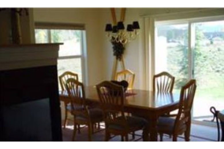 The great room consists of a large living room that boasts a gas fireplace with glass on three sides facing the dining room and kitchen as well. The living area features leather furniture and nice art work. The dining area is surrounded with windows and offers a table with seating for six. The well equipped kitchen includes a bar with seating, a dishwasher, microwave, and side by side fridge and freezer. There is a half bath on this level along with a huge back porch with views overlooking Baldy Mountain. Upstairs there is a master bedroom with a beautiful queen size bed, a second bedroom with 2 twin beds, another seating area, a washer and dryer and 2 full bathrooms. Each of the bedrooms and the living room offer a flat panel TV.Surrounding Description