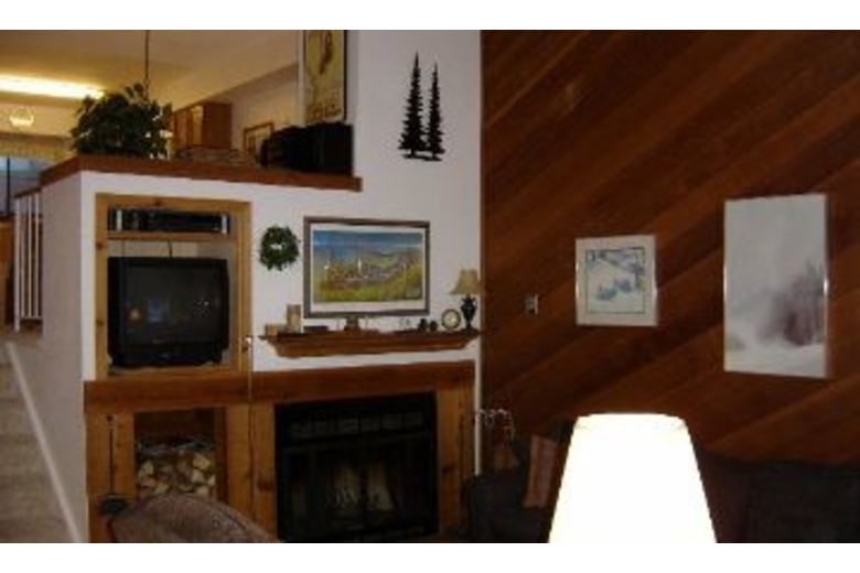 This spacious townhome has a queen bed in the master with tv, queen and bunk beds in the second bedroom, and a Queen sofa sleeper in the living room, right in front of the cozy fireplace! After a hard day on the slopes, enjoy access to the heated swimming pool and hot tubs, or take the 4 O' Clock ski run back down to your condo! Also enjoy the private laundry room, gas fireplace, 2 color TVs, and stereo.Surrounding Description