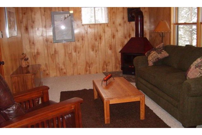 Driving up the driveway, you'll swear you are approaching a rustic Swiss Alps home, but once inside, you will feel as if you have stepped into a newly renovated vacation home! This bright house has a laundry area. You will also find a wood burning fireplace. Heading upstairs, you will find the main living area with living room, kitchen, dining room, and the second full bathroom. The living room is furnished with a brand new velvety soft 'L' shaped sofa for you to warm up by the fire. You will also find the fully stocked kitchen with anything you need. There is a wrap around balcony that holds the private hot tub and gas grill, not to mention the amazing view of all those tall pines!Surrounding Description