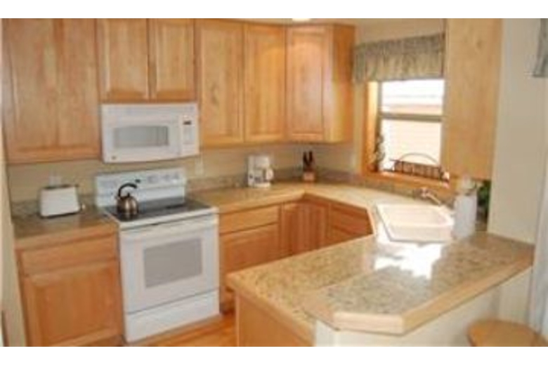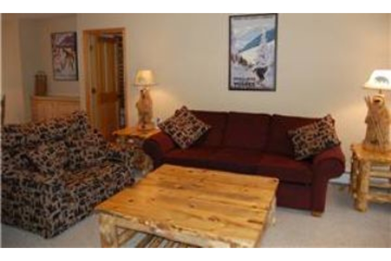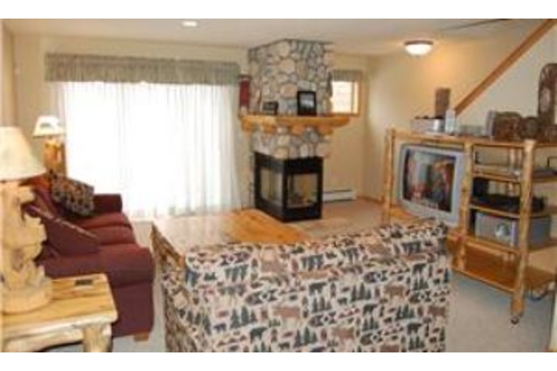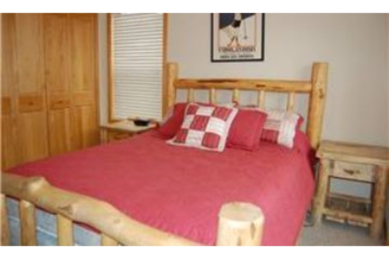 The kitchen features plenty of counter space to prepare a delicious meal. There is a microwave and coffee maker for your convenience. The living area offers a large coffee table, a great place to play a board game with friends in the evening. This room boasts a corner gas fireplace that is surrounded by stone. The master bedroom features a beautiful log king size bed with modern bedding and a TV. The second bedroom also includes a TV. This room features a queen bed and is decorated in fun colors. With a captain bunk bed, the third bedroom sleeps three guests, and the fourth bedroom offers a twin bunk bed. This Fraser townhouse rental offers a DVD player and a washer and dryer.Surrounding Description