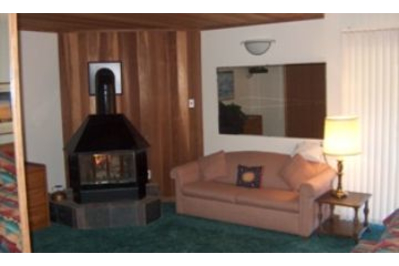 Sleeping up to fourteen guests, this retreat offers two gas fireplaces with one in the living area and one in the master bedroom. There are three TV's, three VCR's and a DVD player. The living area is spacious and is a great place to enjoy your friends and family after a day on the slopes. The master bedroom offers a king bed and a queen sleeper sofa. The second bedroom offers two twin beds. The third bedroom is great for a group, it features two twin beds and a double bed. The fourth bedroom offers two bunk beds. There is also a queen sleeper sofa in the living area.Surrounding Description