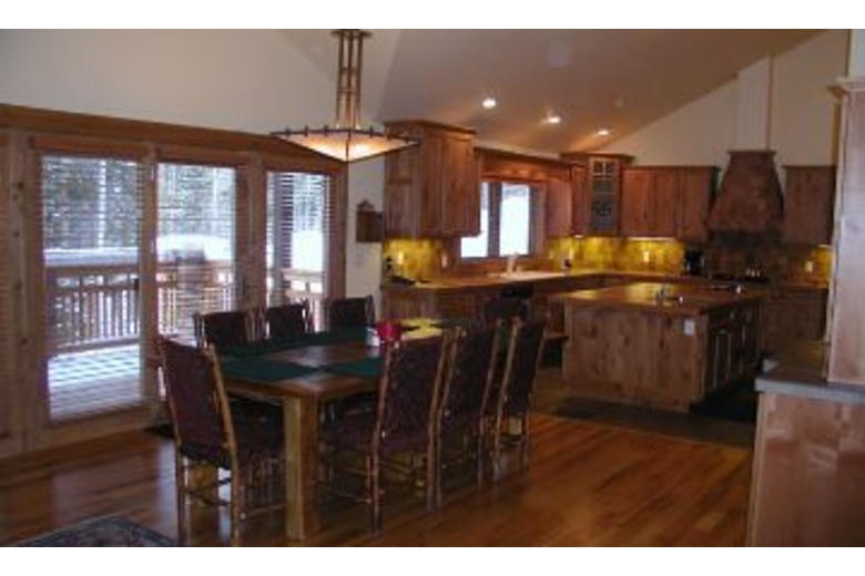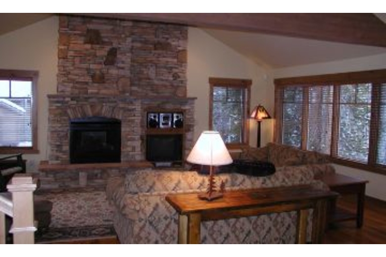 The great room is very large and offers plenty of windows to let the sunshine filter through. There is a beautiful rock fireplace with a hearth. The dining area opens onto one of the decks. The dining table is large and offers seating for eight. The kitchen offers wood floors and beautiful cabinetry. The master suite offers a king size sleigh bed, a Jacuzzi tub, gas fireplace and private deck overlooking the mountains. The second and third bedrooms offer two twin beds. This unit includes a washer and dryer.Surrounding Description