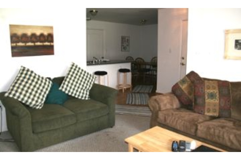 This townhome comes with two bedrooms, two baths and a gas fireplace. The fully equipped kitchen has a blender, coffee maker, microwave and breakfast bar with extra seating. The dining area has a table and four chairs. In the living area you will find cable TV and a DVD player. The master bedroom has a queen bed and in the second bedroom there is a double bed plus a twin bed with a trundle. For two extra guests, there is a double sofa sleeper available in this unit.Surrounding Description
