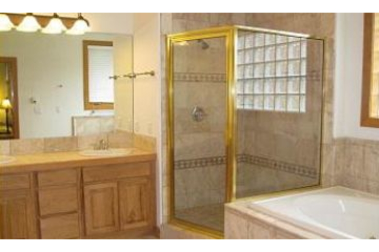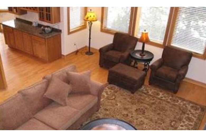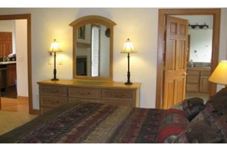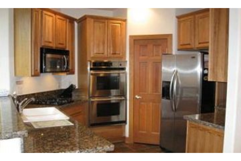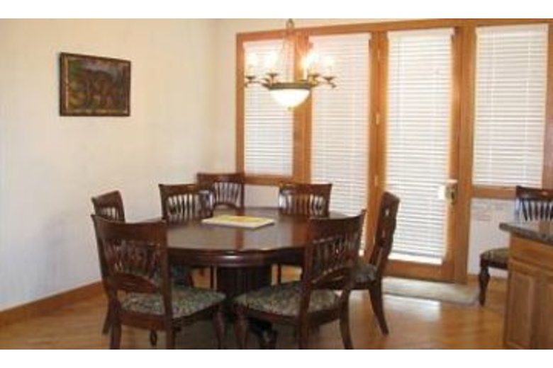 The living room has a gas fireplace to relax next to after a fun-filled day in Summit County. This home has stunning vaulted ceilings and hardwood finishes throughout. The kitchen is nicely furnished with beautiful granite countertops, tile flooring, stainless steel appliances and a breakfast bar. The kitchen has dual ovens making it easily to prepare a wonderful homemade meal. The dining table is adjacent with seating for up to eight people. The master bedroom is on the main level and has a gas fireplace that will set the mood. This room features a king sized bed and a large ensuite bathroom with a jetted garden tub, separate showers, and double sinks. The master bedroom also has access to the patio. The remaining three bedrooms are upstairs and each are furnished with a TV. The second bedroom has a king bed and private bath, the third and fourth bedrooms each have two twin sized beds and share a bathroom. More sleeping space is provided with a futon in the loft and sofa sleeper in the living room. This home is equipped with a laundry room, two car heated garage, and internet access.Surrounding Description