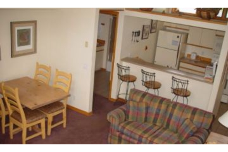 This two-level townhome has two bedrooms and two full bathrooms. The master suite offers beautiful cathedral ceilings and a king size bed. The other bedroom/den offers a queen murphy bed and a sofa sleeper is available. There is a nice fully equipped kitchen with breakfast bar, a dining area, and a lovely living room with fireplace. The 2nd level deck offers beautiful views of the pines. This unit includes a washer and dryer.Surrounding Description