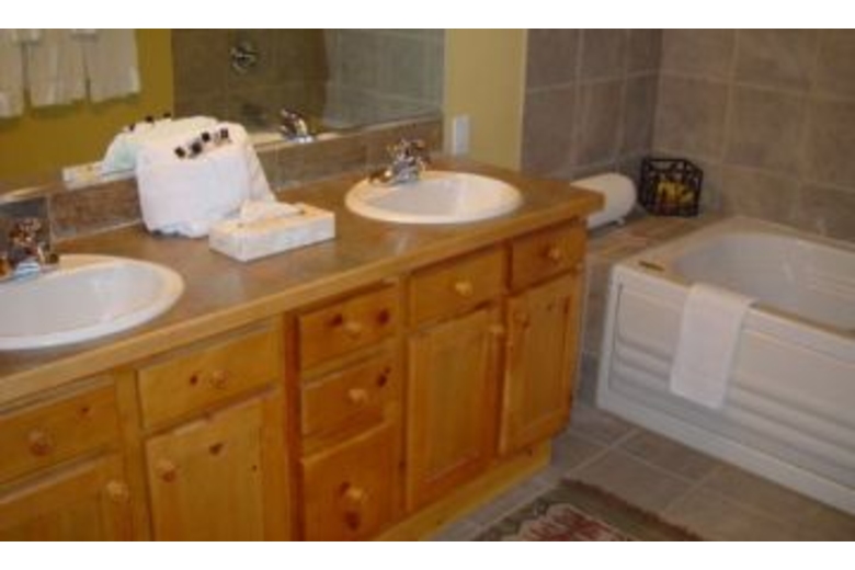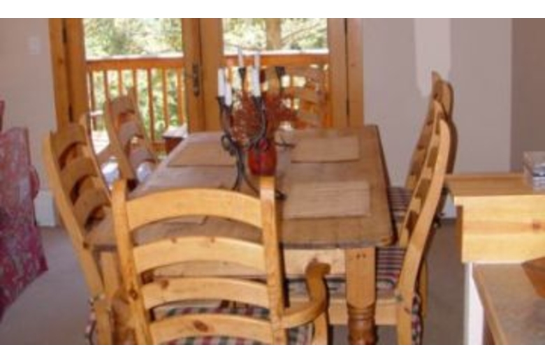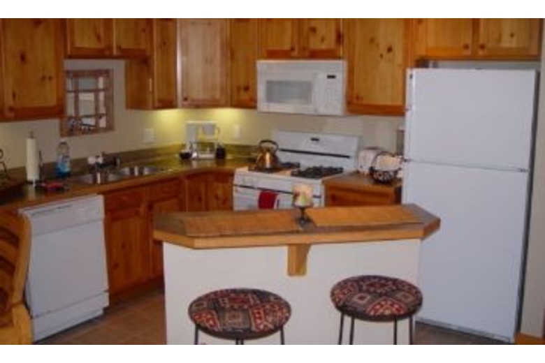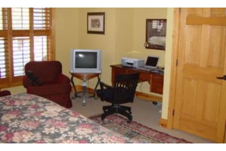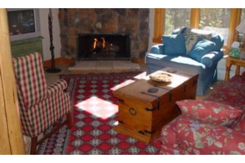The master bedroom is large, but feels even larger with the cathedral ceilings and windows on 2 sides. The Master bath is very nice with 2 sinks and a separate tub and shower. The second bedroom is lovely with beautiful furnishings and a queen size bed. The kitchen is large and well equipped and comfortable with nice light and views. The dramatic living area with stone fireplace and cathedral ceilings awaits you and your family after a day enjoying the mountains and outdoors. Enjoy your mourning coffee while relaxing on your deck in some Adirondack chairs.Surrounding Description
