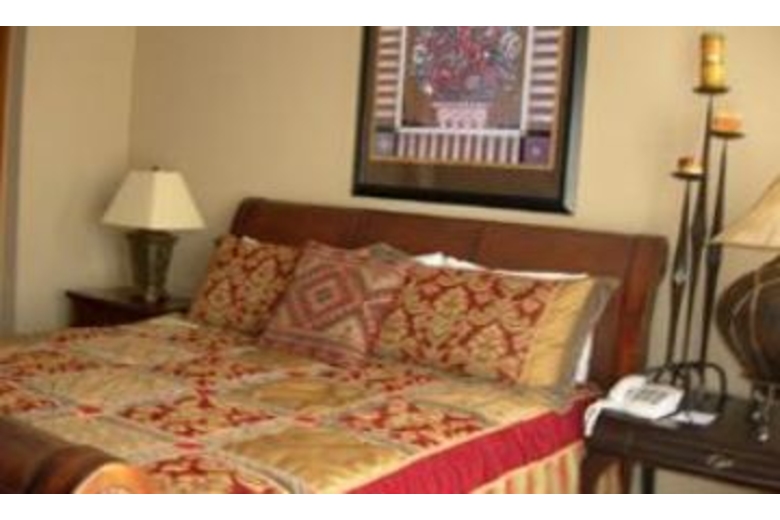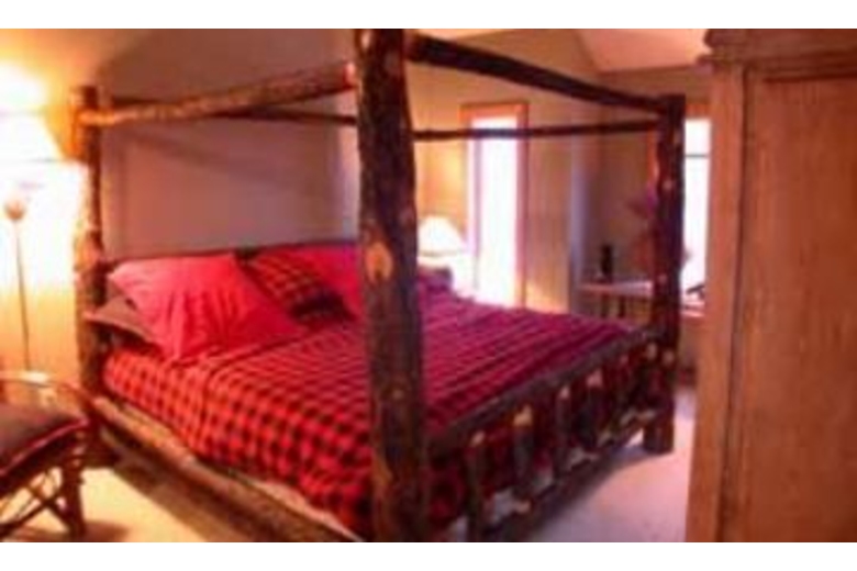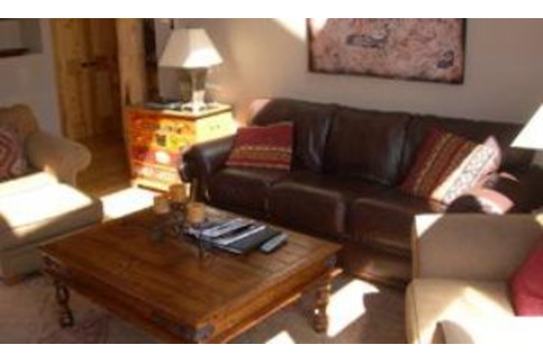 Enjoy a getaway with your sweetheart and favorite couple. The living area is beautifully furnished. The room offers cozy seating along with a fireplace to keep everyone warm on a cold winter’s night. The kitchen is fully equipped and offers a breakfast bar. The dining area offers a beautiful table that will allow you to invite another couple over for dinner.This wonderful townhouse offers two cozy master suites. The first bedroom offers a log canopy framed king bed dressed in red and black bedding. The second bedroom features king bed on a sleigh bed frame and dressed in elegant bedding. Outside you’ll find a wonderful hot tub along with amazing views of the mountains.Surrounding Description