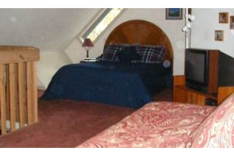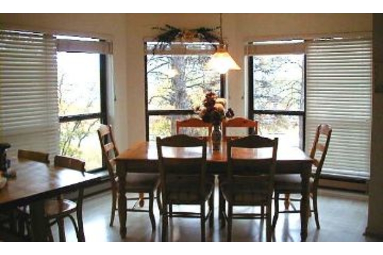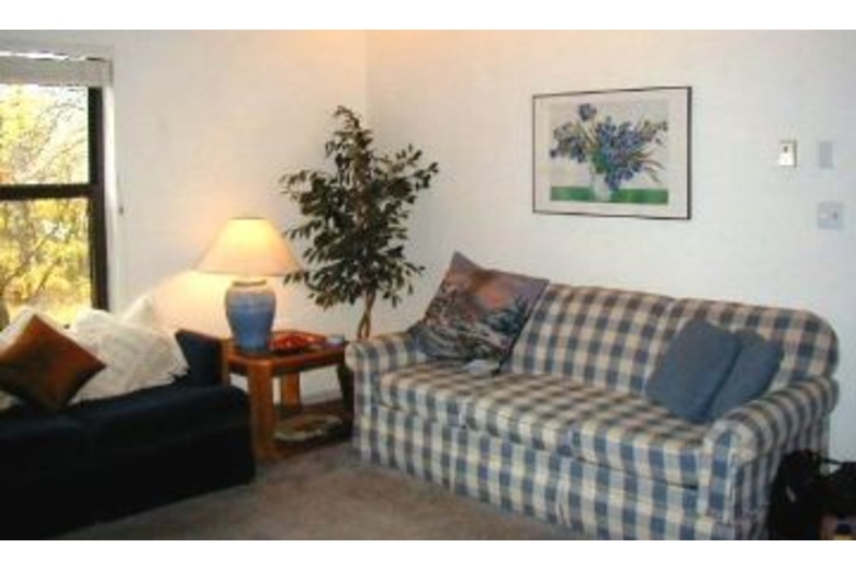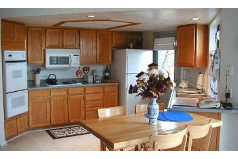 Sleeping arrangements are one queen bed in each bedroom, a double and a twin in the loft, and a sofa sleeper in the living room. Of course, this is a fully furnished home with washer and dryer in the garage, dish washer, microwave, stove, oven, refrigerator, and cable television and also a DVD player. The dining room table seats eight with a bar that seats two. Place settings for ten. There is a glass-enclosed gas furnace in the living room.Surrounding Description