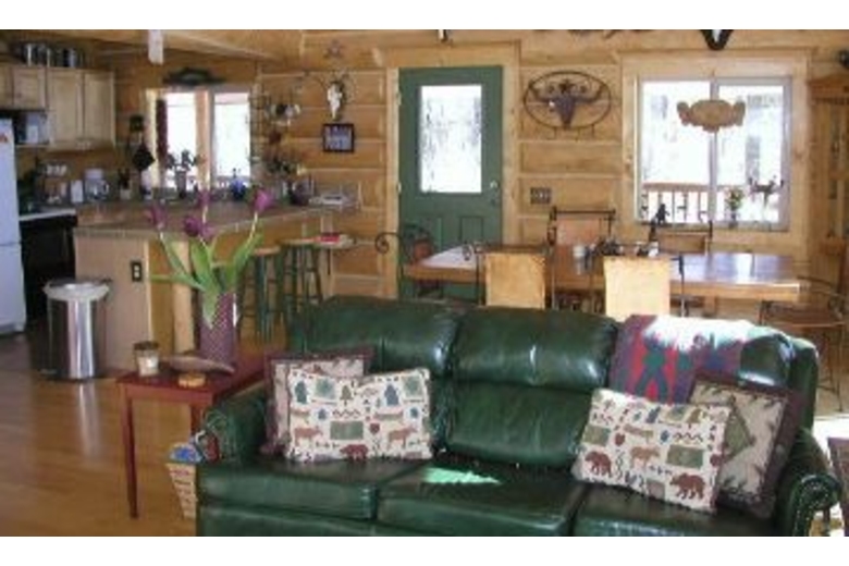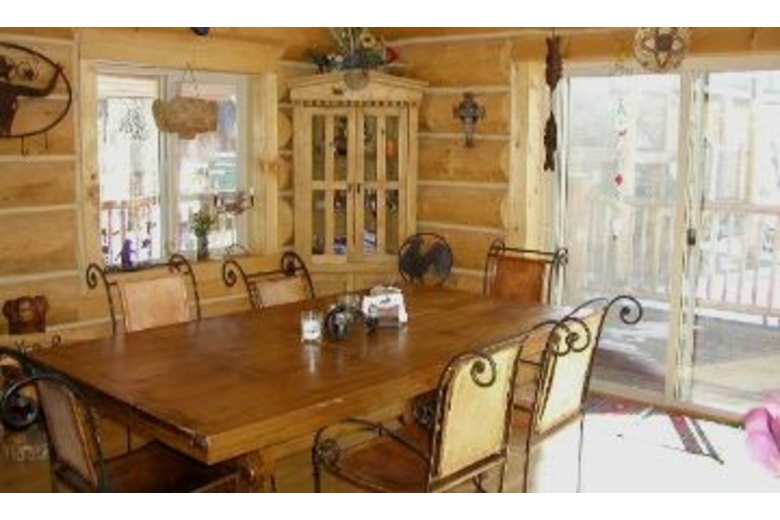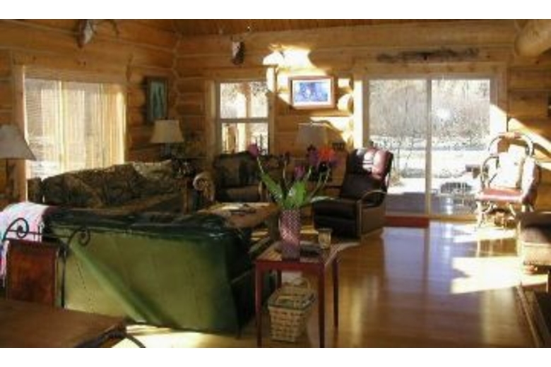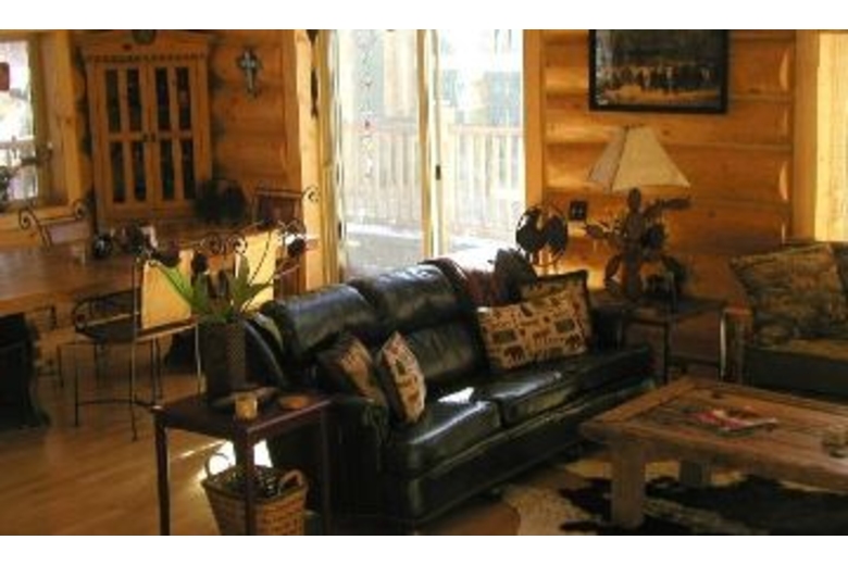 Just 20 minutes to Wolf Creek Ski Area, The house is a beautiful log home on the river with a huge wraparound deck and gorgeous views. This home sleeps 8 in three bedrooms with 2 queens, 2 twins, and a double futon.Surrounding Description