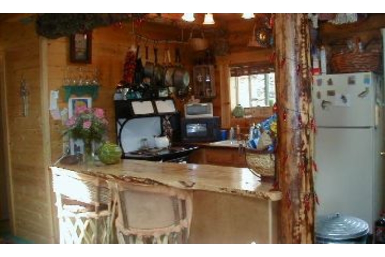 This is a log home. It is completely furnished with loads of Southwest charm, custom furniture and warmth. Beautiful antiques, art, and handcrafted custom made log furniture, picture perfect! It has all amenities, washer, dryer, antique reproduction stove and oven, microwave and small appliances. It has an antique wood burning stove, circa 1890, which can be used for burning wood. There is a large deck out back which overlooks the river and has a six person Jacuzzi. This is absolutely great for romance, relaxation and entertaining family and friends. This deck is completely furnished with custom handmade patio furniture, hammock and portable outdoor fireplace and gas grill.Surrounding Description