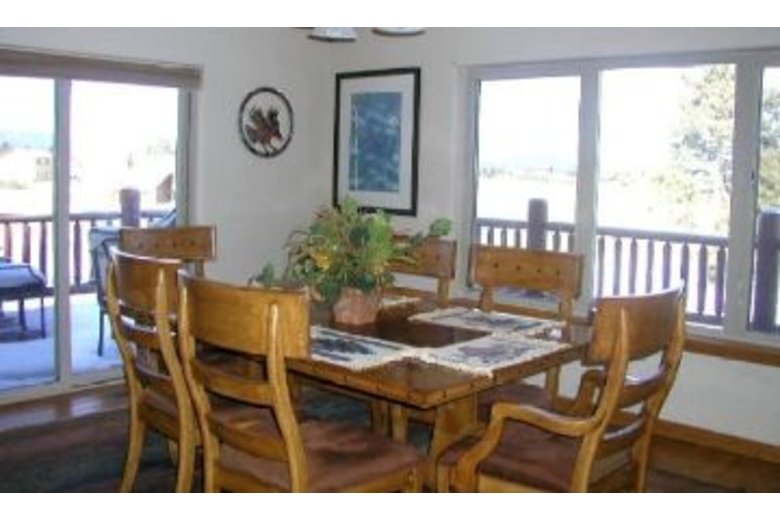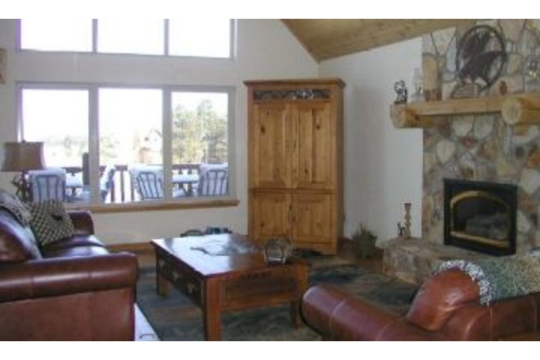This log home has large decks and plenty of windows to enjoy the fantastic mountain views. It is close to many fun outdoor and indoor activities.