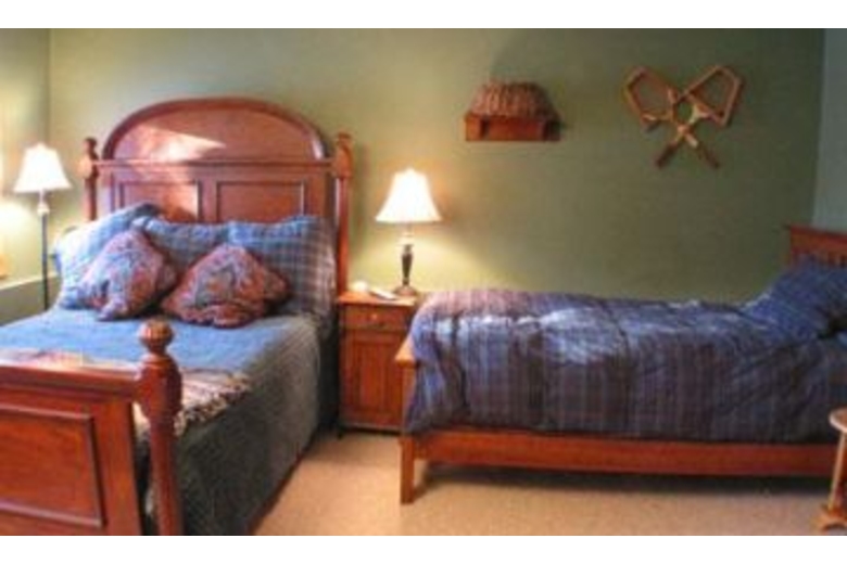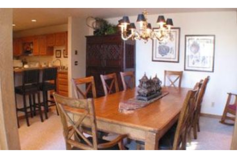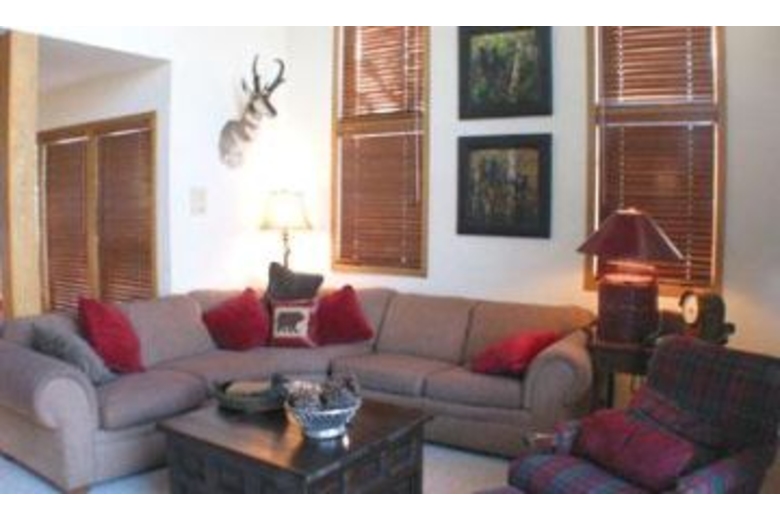 This large duplex has four bedrooms plus a loft and three and a half bathrooms. The bedding includes a king size bed in the master bedroom, two twin bunk beds in the second bedroom, a queen bed in the third, and a queen with a twin bed in the fourth. The loft is accessible only from the garage and offers a twin bunk bed with an extra twin bed. A sofa sleeper is in the living room. This property has a nice fully equipped kitchen, dining room, and living room with fireplace. The deck offers beautiful views and a new hot tub. A washer/dryer is also in the home.Surrounding Description