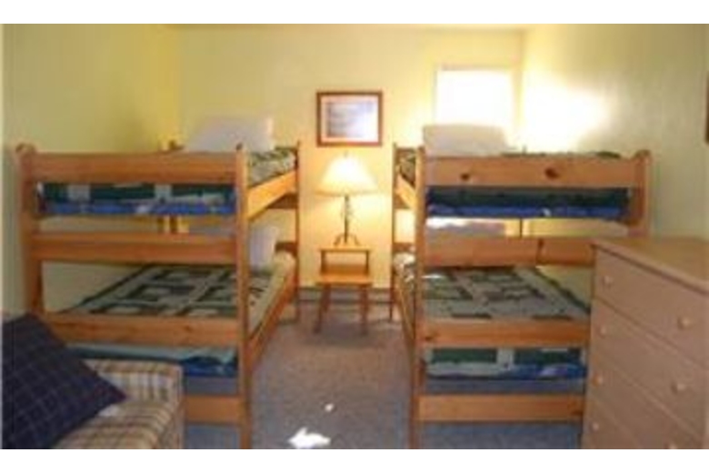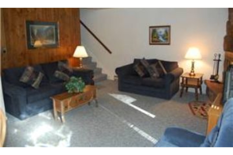 Spanning 880 square feet, this great townhome has two bedrooms, one bath, and can accommodate up to eight people comfortably. The living area is done in shades of blue and has a sleeper sofa as well as a wood burning fireplace. The wood dining table is set for six, and if you love to cook, you will enjoy the fully equipped kitchen. The master bedroom is beautiful, boasting a queen bed. In the second bedroom you will find two sets of twin bunk beds, perfect for four children.Surrounding Description