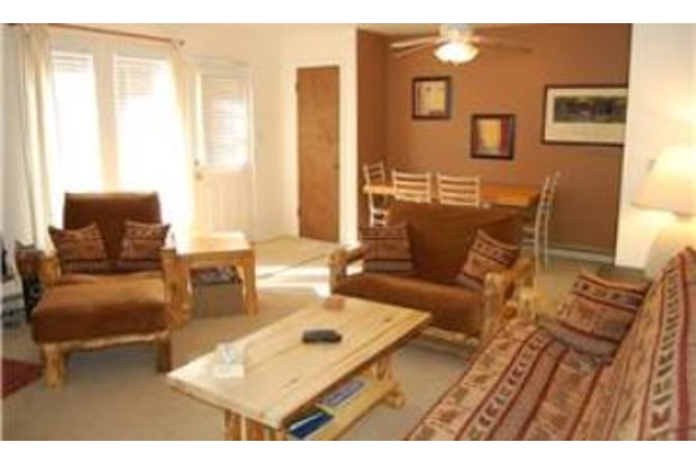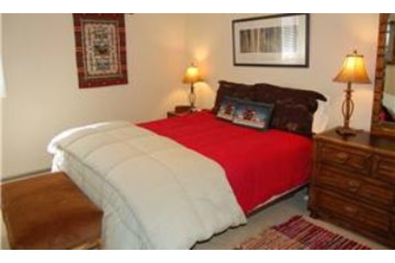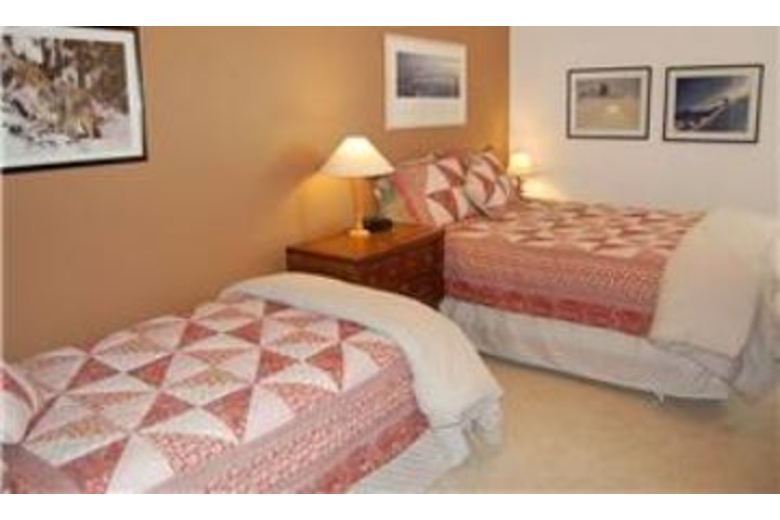 This townhome has 880 square feet of living space spread out over two levels. The open living area is on the main floor and offers a wood burning fireplace, queen sofa sleeper, and a tv, vcr, dvd and cd player for your entertainment needs. If you love to cook, then you will love the fully equipped kitchen. Preparing your own meals in the comfort of your own vacation rental is the perfect way to save money while vacationing. The master bedroom is luxuriously decorated and has a queen size bed for your comfort. You will find another queen bed and a twin bed in the second bedroom, both beds done in pink patchwork quilts.Surrounding Description