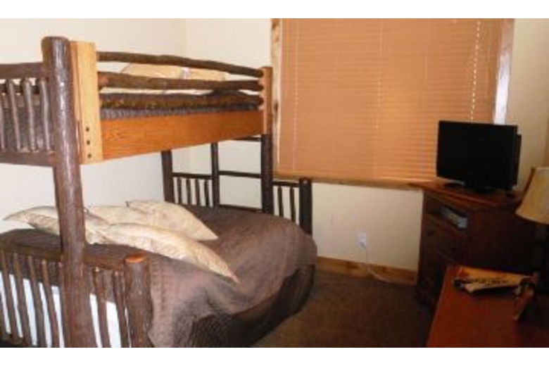 The master bedroom has a king size bed and the master bath boasts a Jacuzzi tub. The second bedroom has a queen bed and the third has a bunk bed with a full bed on the bottom and a twin bed on top. This bedroom also has a twin trundle. The kitchen has stainless steel appliances and a breakfast bar with bar stools. The living area is spacious and has high ceilings and a gas fireplace. The entertainment-system in the home consists of three flat screen TV's, surround sound in the living room and satellite TV including HBO channels. There is also a washer and dryer and a one car garage.Surrounding Description