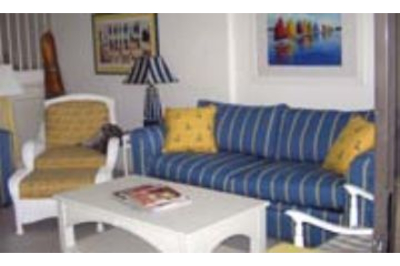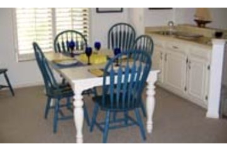 This split level three story town home has a fabulous view of the lake. Decorated with blues and yellows, there is a cheerful yet bright feel to this unit. The living room is comfortably furnished and has television, VCR, DVD player,CD player, and two phones with answering service. This unit has a lanai off of the living room and an open balcony right outside the master bedroom that overlooks the lake. The bedding includes a king size bed, queen bed, and two sleeper sofa's, one in the living room other in loft on third floor.Surrounding Description