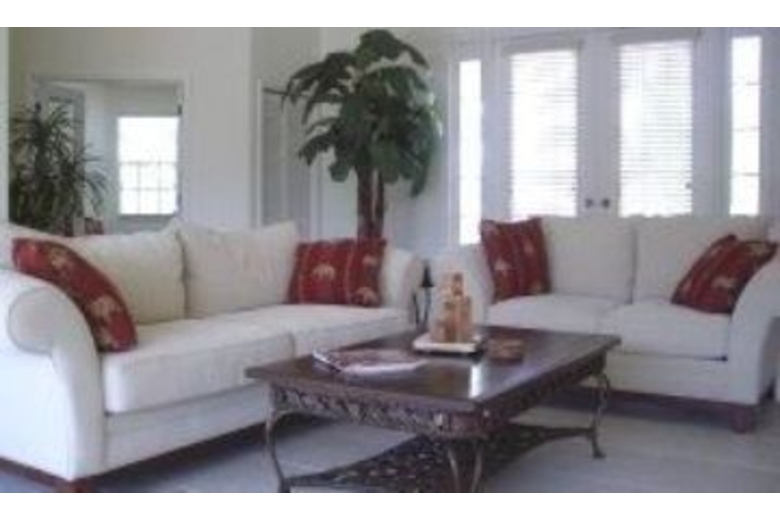 The master bedroom has a view onto the imperial river and pool, which offers a very special view when the sun shines through the blinds. The bathroom consists of a big oval bath tub, two sinks, a big walk in shower, as well as two walk in closets. The second bedroom has two twin beds, one comfortable pull out couch, and big closets. the living room offers a big screen TV and a couch. There is also a dining room with a rattan table and chairs.Surrounding Description