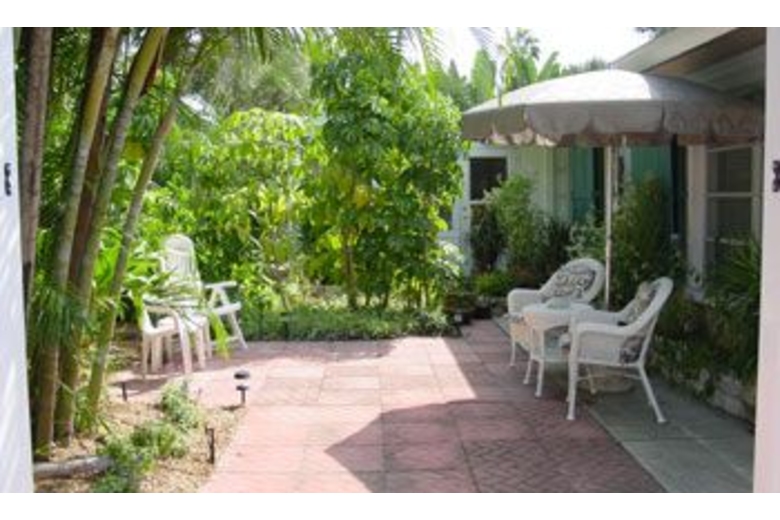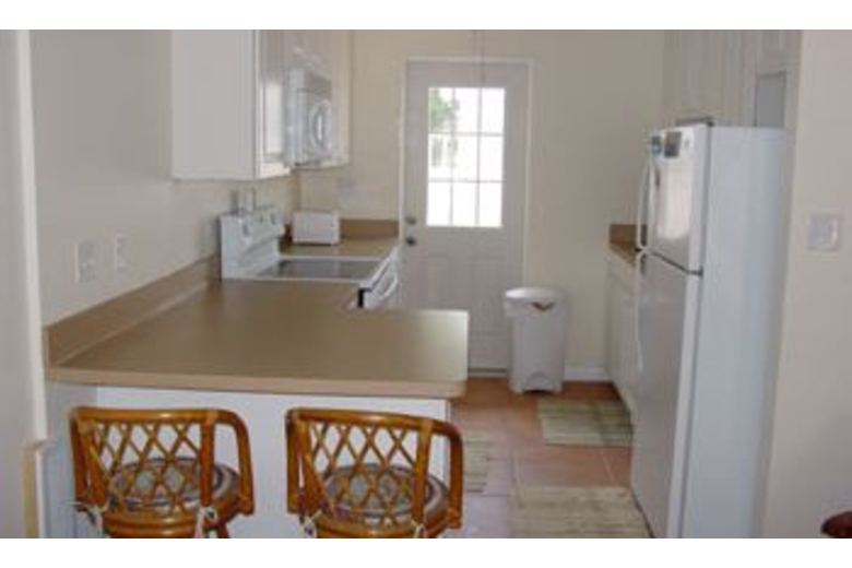 This two bedroom, one bathroom home is one block from the beach. It has a well equipped kitchen, ceiling fans, washer and dryer, cable TV, VCR, DVD, pool and parking. Bedroom one has a fully size bed. Bedroom two has two twin beds.Surrounding Description