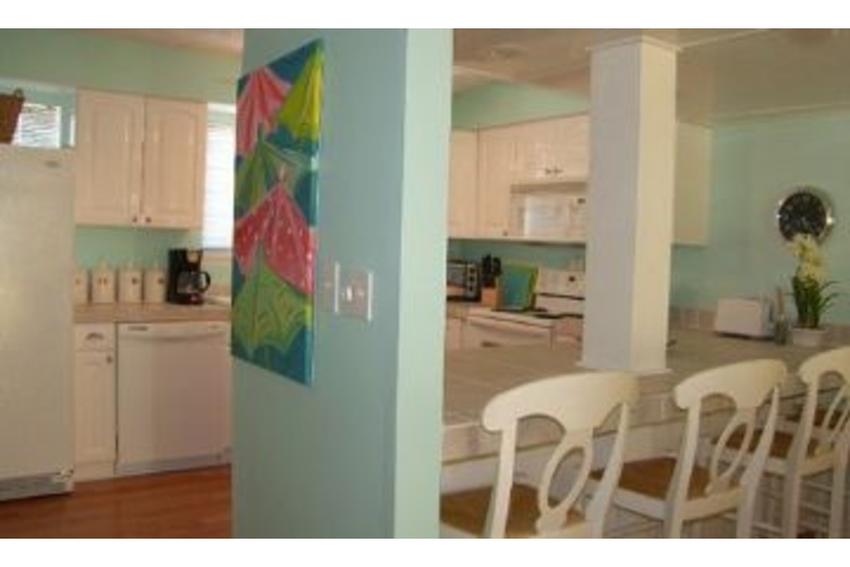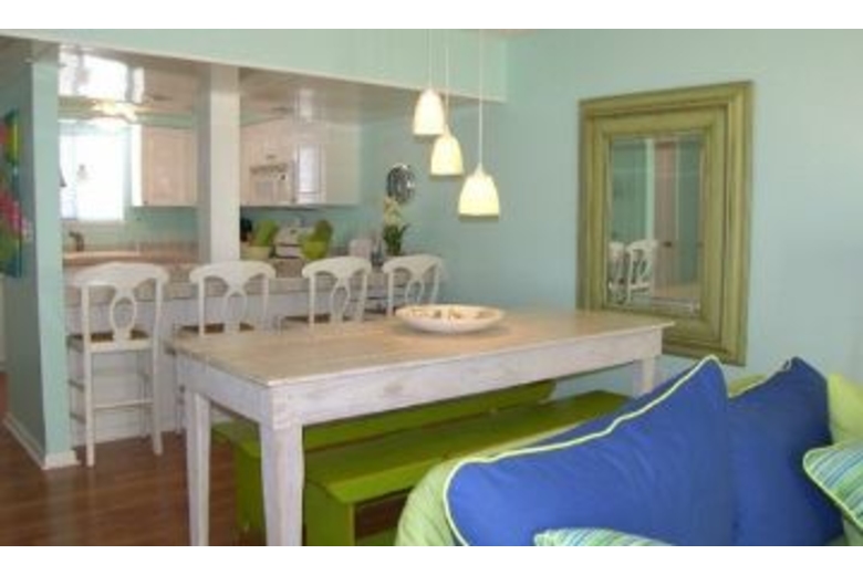 This upscale two bedroom and two and a half bathroom townhome has been completely remodeled with luxurious furnishings, decor, and flooring throughout. Enjoy the grand open spaces and bright colors that are present in every room. The large kitchen is beautiful with lovely cabinetry, tile counter tops, and a bar with seating for four. Other kitchen amenities include a side by side refrigerator and a quite dishwasher for added comfort during your stay. Entertainment is endless with multiple large flat screen HD TVs, DVD player, unlimited DVD rentals, and wireless internet. Step out onto the open deck and take in the incredible views as you breathe the clean ocean air. This townhome is perfect for the entire family including the family pet.Surrounding Description